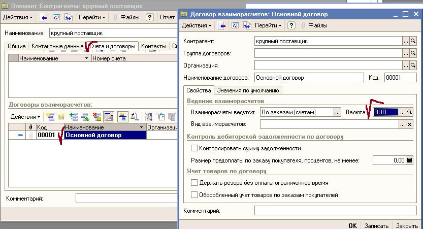 2. Создайте поставщика "Б". Договор тоже рублёвый.