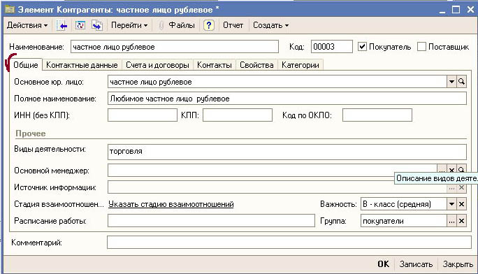 Внутри покупателей нужно создать (Insert) "Частное лицо рублёвое", при этом убедитесь, что основной договор - рублёвый (валюта RUR).