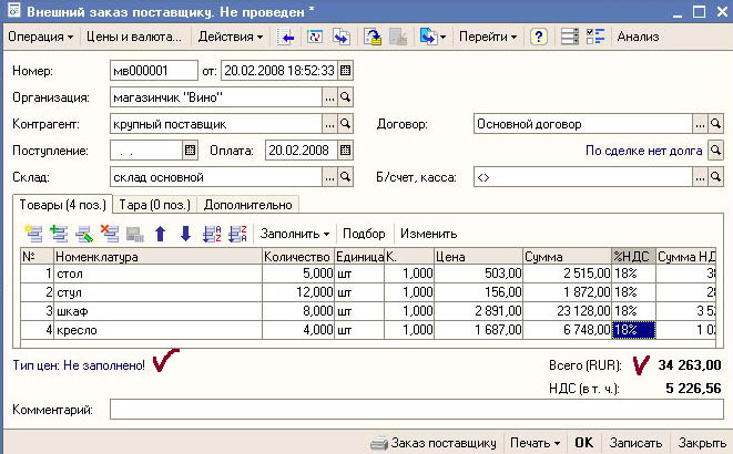 6. Оформите заказ поставщику ОАО "Шустрый веник" на всё это.
